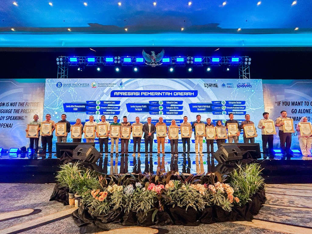 Pada Pertemuan Tahunan Bank Indonesia (PTBI) 2025, Sulawesi Selatan kembali memperkuat prestasinya dengan meraih empat penghargaan, termasuk kategori provinsi, kota, dan kabupaten terbaik dalam implementasi TP2DD, serta penghargaan bagi Bank Sulselbar sebagai peserta SKNBI dan KPDHN terbaik.