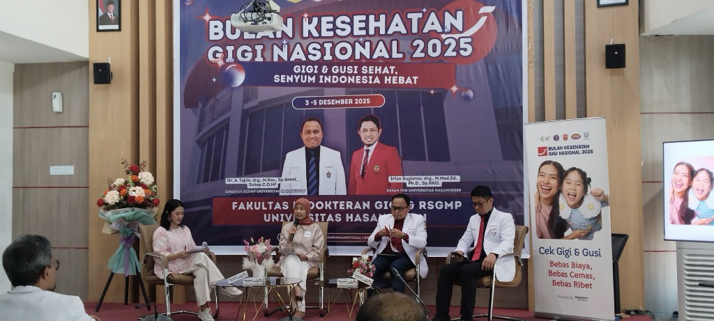 MAKASSAR, INFODAENGAPPA.ID – Bulan Kesehatan Gigi Nasional (BKGN) 2025 kembali digelar di Makassar dengan fokus besar pada peningkatan kesadaran masyarakat terhadap kesehatan gigi dan gusi. Kegiatan berlangsung di Rumah Sakit Gigi dan Mulut Pendidikan (RSGMP) Universitas Hasanuddin, Rabu (3/12/2025).